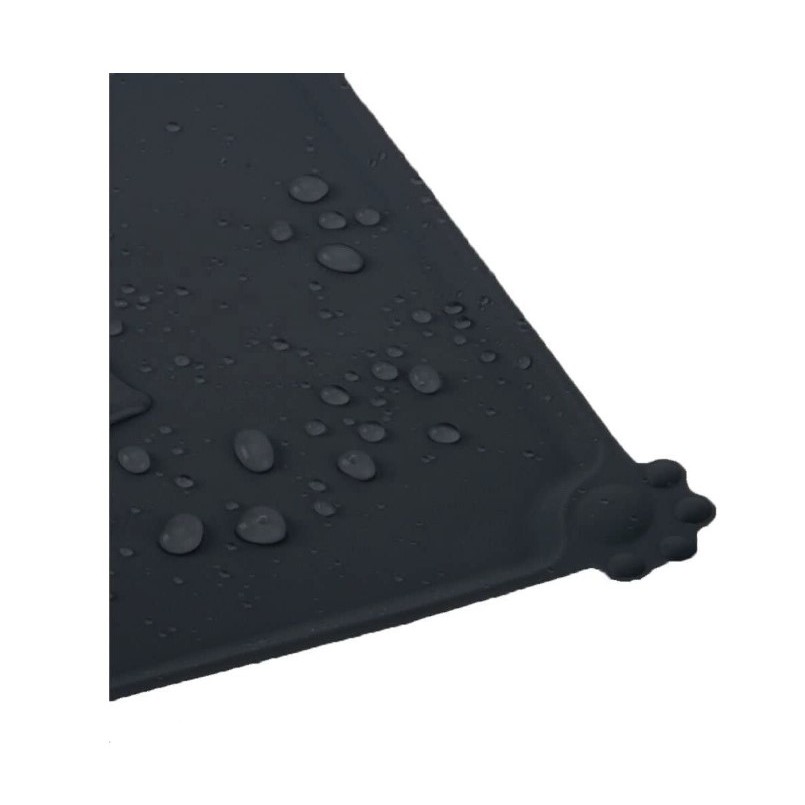Covoras din silicon pentru animale Flippy, pentru bol de apa si mancare, antiderapant, margini ridicate pentru a mentine apa, 48.5×30 cm, Negru