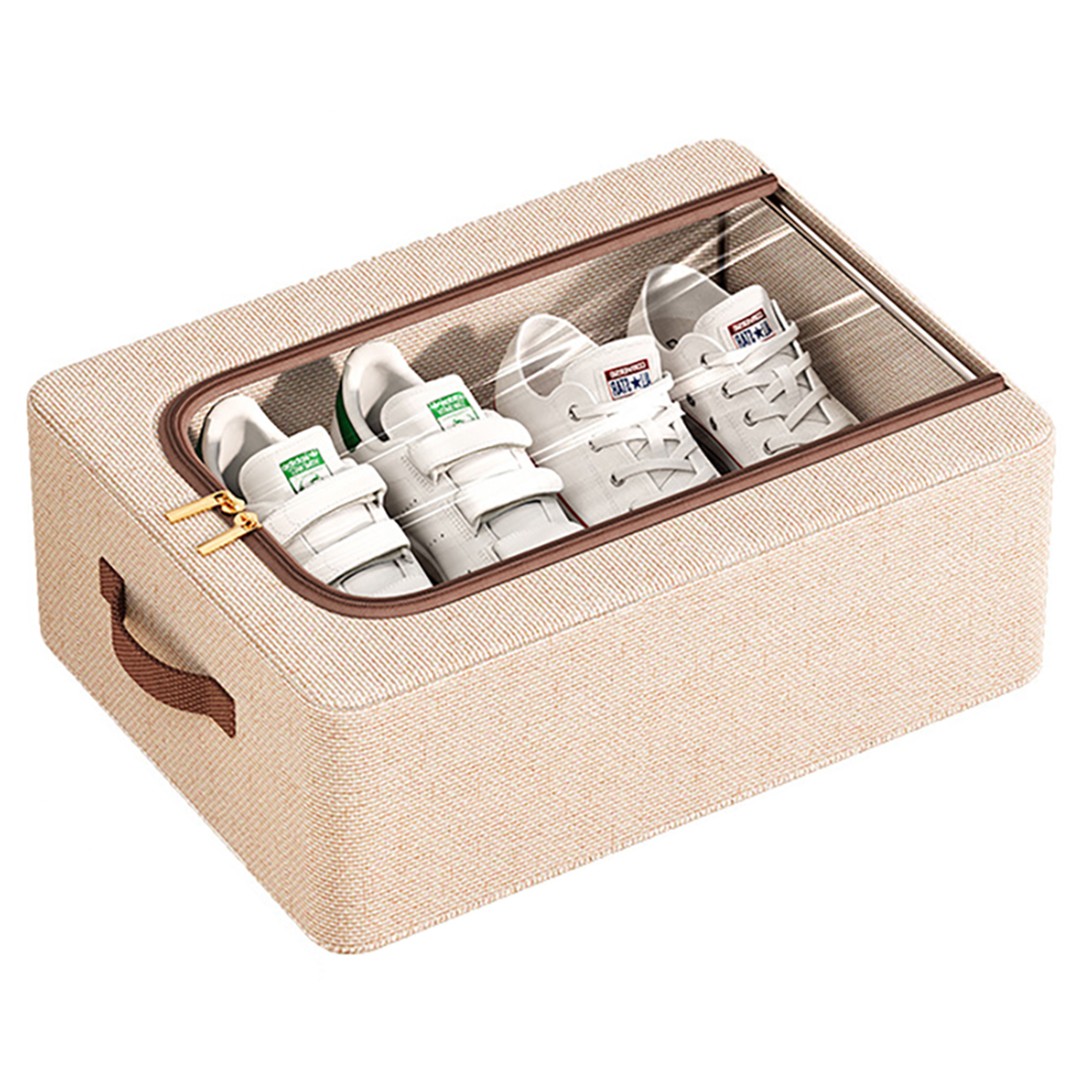 Cutie Depozitare cu Cadru Metalic, Flippy, pentru Incaltaminte, Haine, Lingerie, Fermoar Calitativ, Fereastra Transparenta, Manere Laterale, 40 x 30 x 15 cm Bej