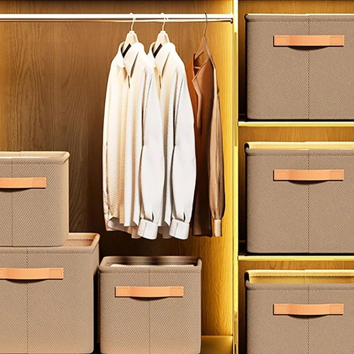 Cutie Depozitare Flippy, pentru Haine, lucruri, din Textil cu Cadru Metalic, Manere Laterale, forma Dreptunghiulara, 35 x 25 x 22cm, volum 19 L, Kaki