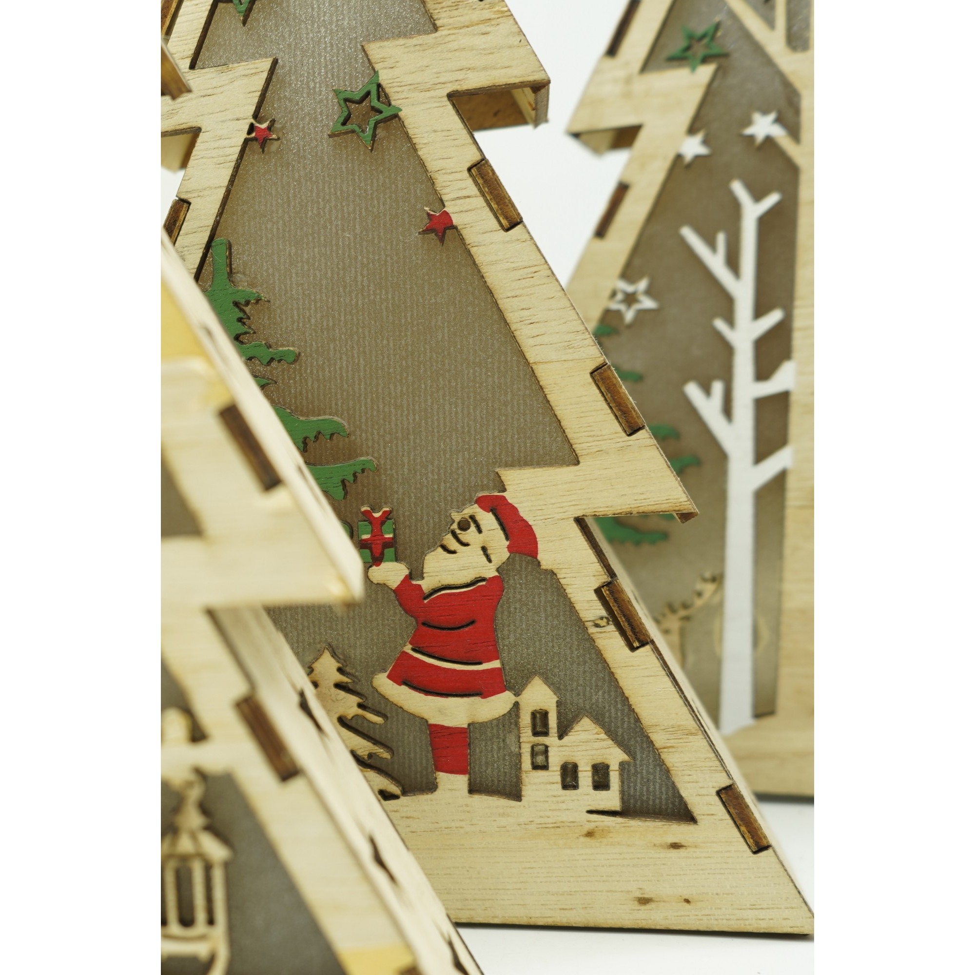 Cantitate Decoratiune luminoasa, model de Brad cu Mos Craciun, maro, lungime: 14 cm, latime: 5 cm, inaltime: 20 cm, lemn, interior/exterior