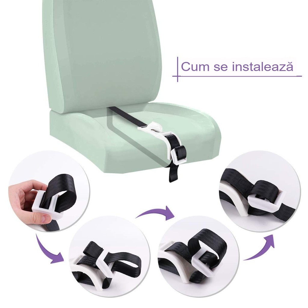 - Cureaua este realizata cu colturi ovale, iar designul barei asigura cureaua sa nu iasă din dispozitivul de reglare a centurii de maternitate, astfel incat pasagerii sa fie in siguranta si protejați in orice moment.