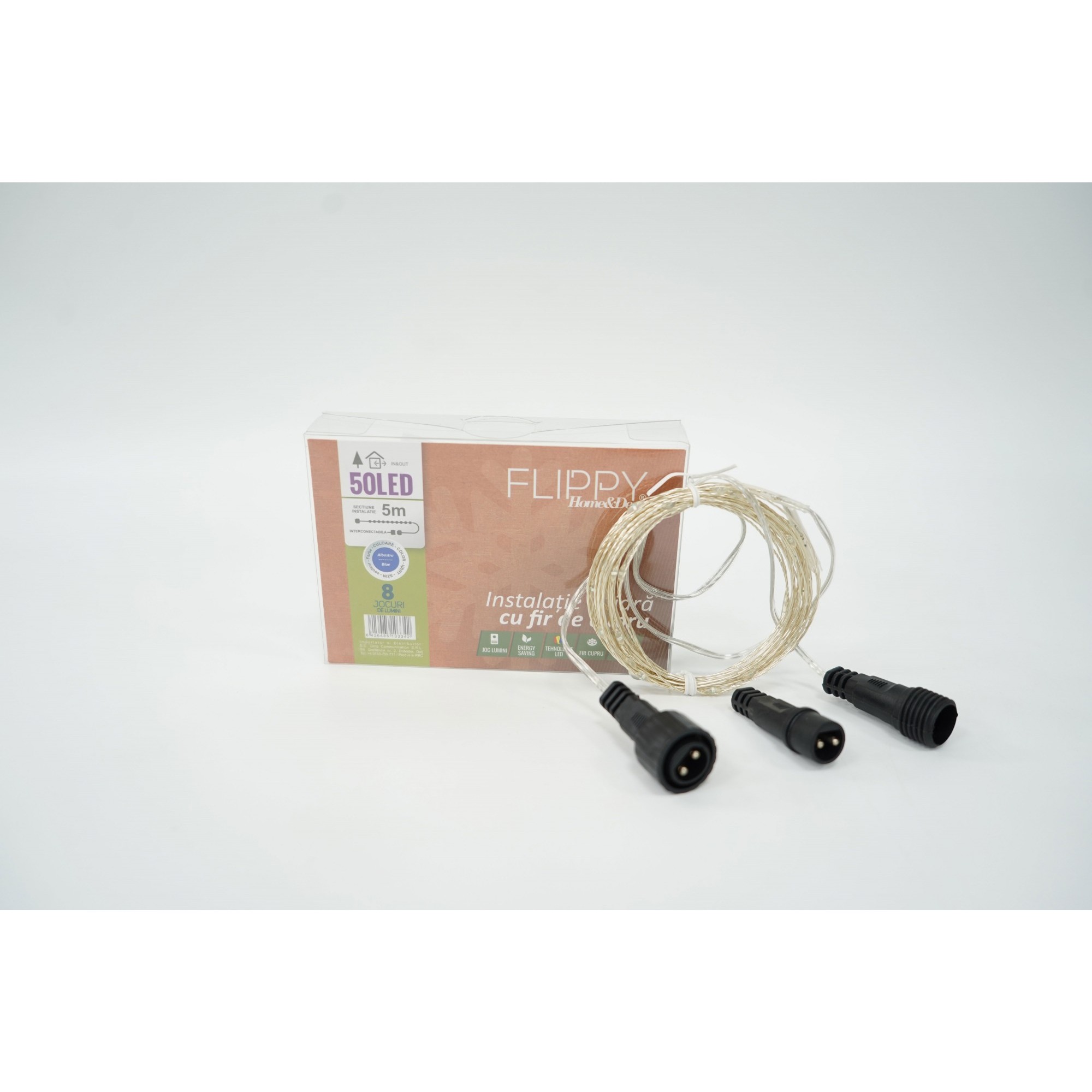 Instalatie Craciun, 50 m, 500 Led-uri, Liniara, Alb Cald, 8 jocuri de lumini, Transformator, Interconectabila, Prelungitor 3 m inclus, Fir Cupru, Flippy