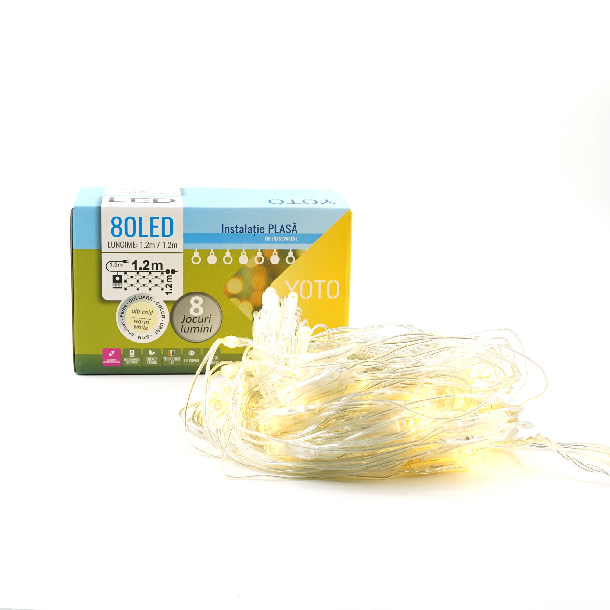 Specificații Tehnice ale Instalației de Crăciun Yoto Tip Plasă 1.2 m x 1.2 m: