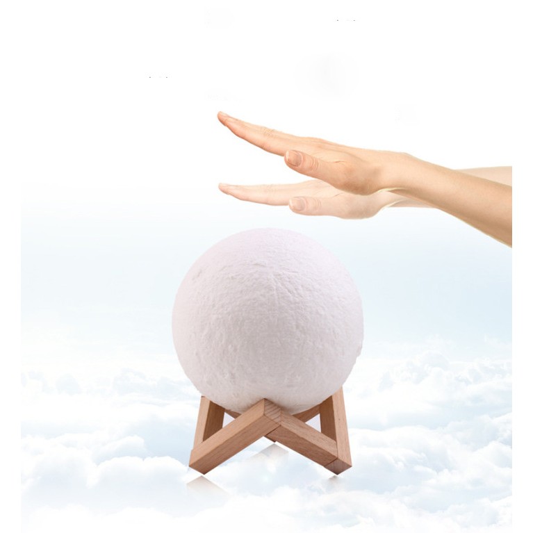 Lampa de veghe luna 3D Moon Light,lumina multicolora cu LED, 7 culori, schimbare culoare prin atingere, alimentare baterii, fara acumulator, stand din plastic inclus, 20 cm, Flippy