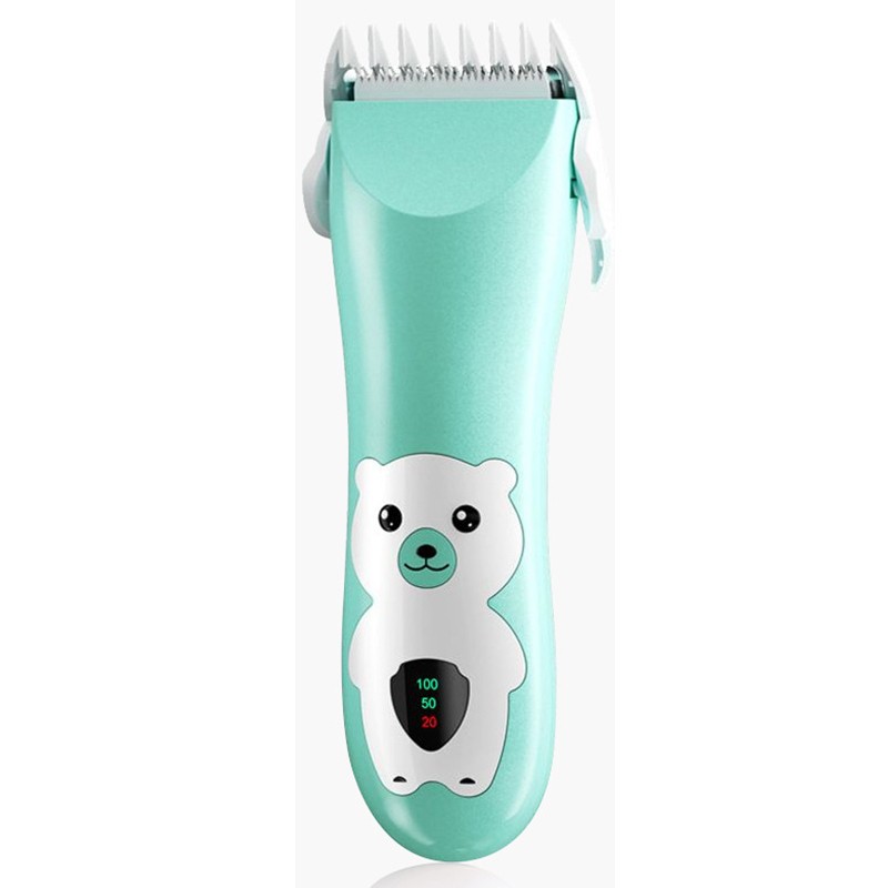 Masina De Tuns Bebelusi si Copii, Flippy, Display Digital, Lame Cermice si Inox, Fara Fir, Functie Anti Taiere, Silentios, 50 W, Rezistent la Apa, 2 Accesorii, Incarcator USB, Model Ursulet, Verde