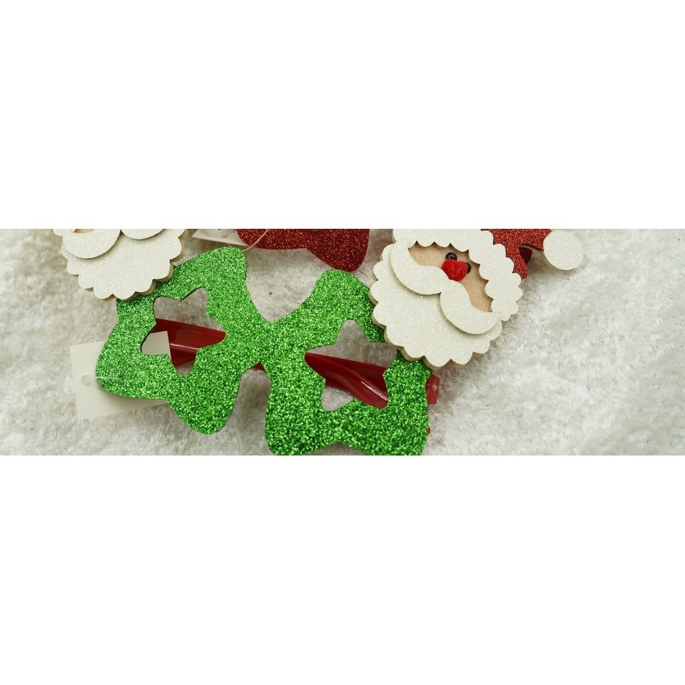 Cantitate Ochelari petrecere de Craciun, tip Stea cu Mos Craciun, Verde, din Plastic si Poliester, Flippy