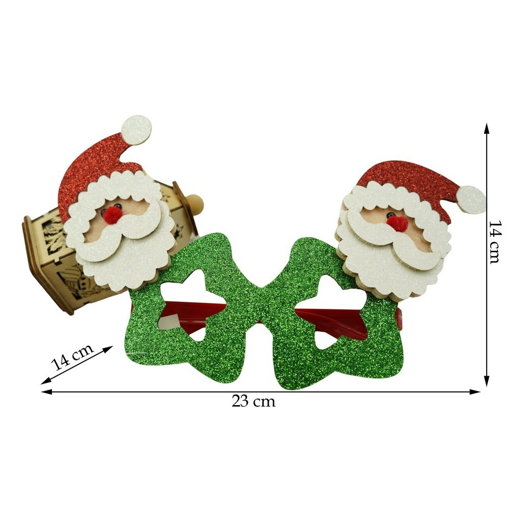 Ochelari petrecere de Craciun, tip Stea cu Mos Craciun, Verde, din Plastic si Poliester, Flippy