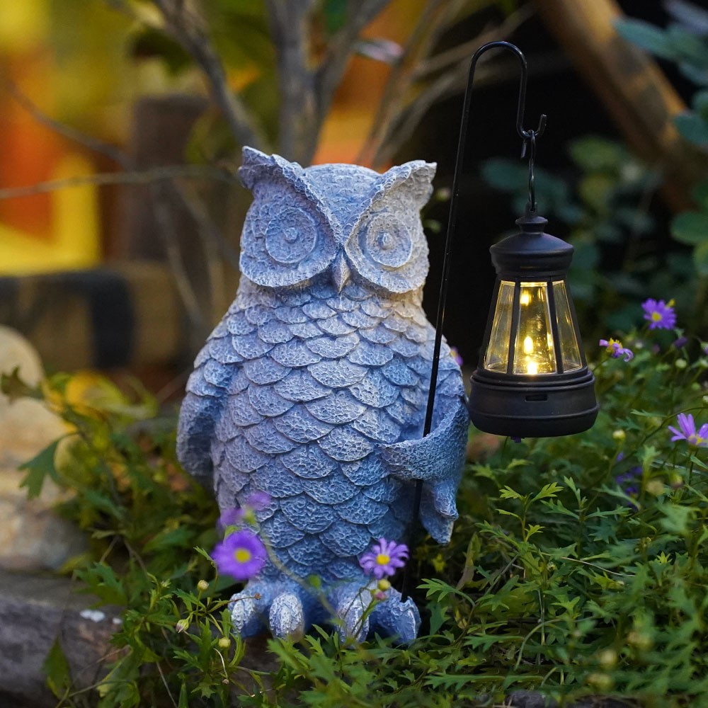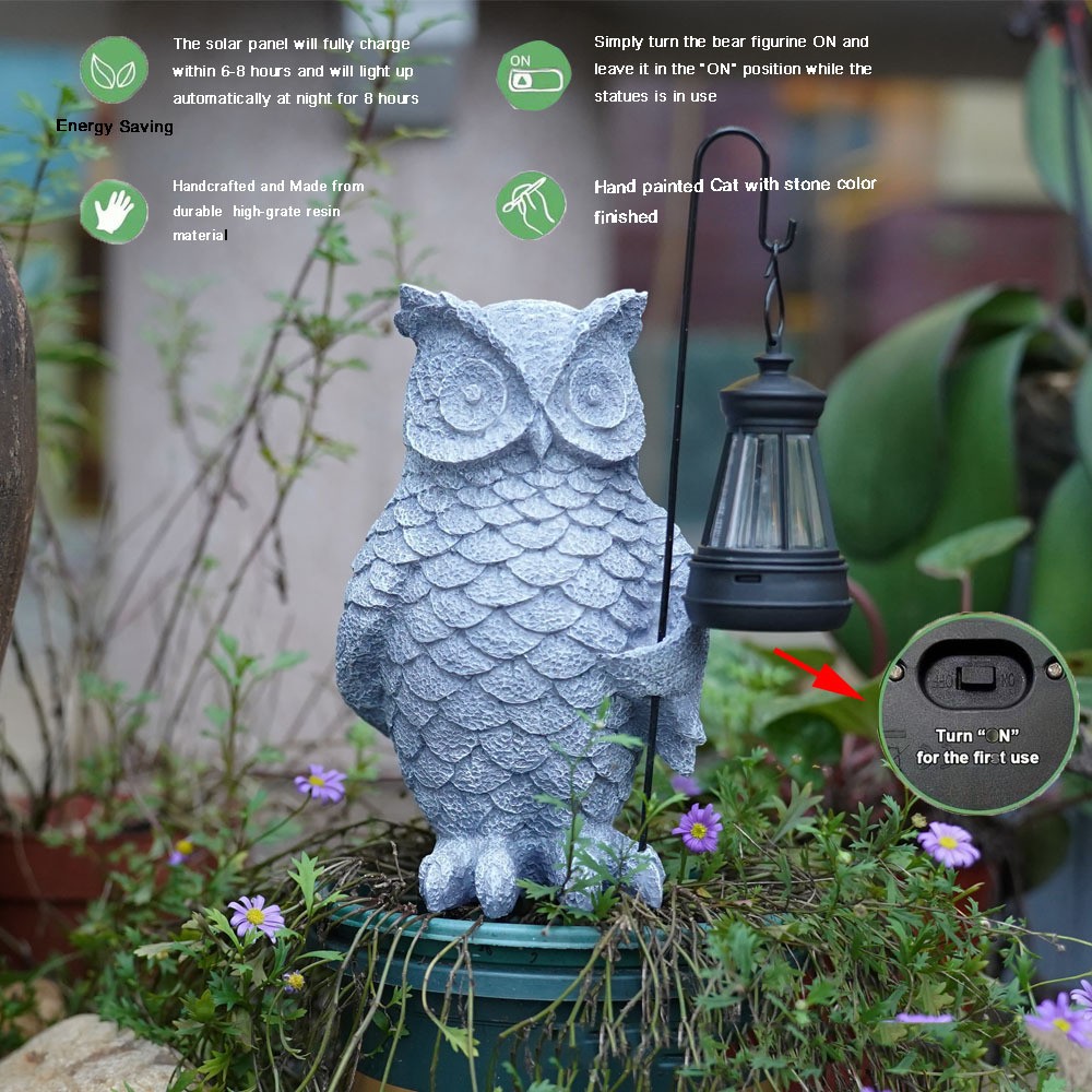 Adauga un plus de farmec si lumina spatiului exterior cu aceasta decoratiune solara in forma de bufnita cu felinar. Realizata din rasina durabila de inalta calitate, piesa este atent pictata manual, imitand finisajul natural al pietrei pentru un aspect elegant si realist.