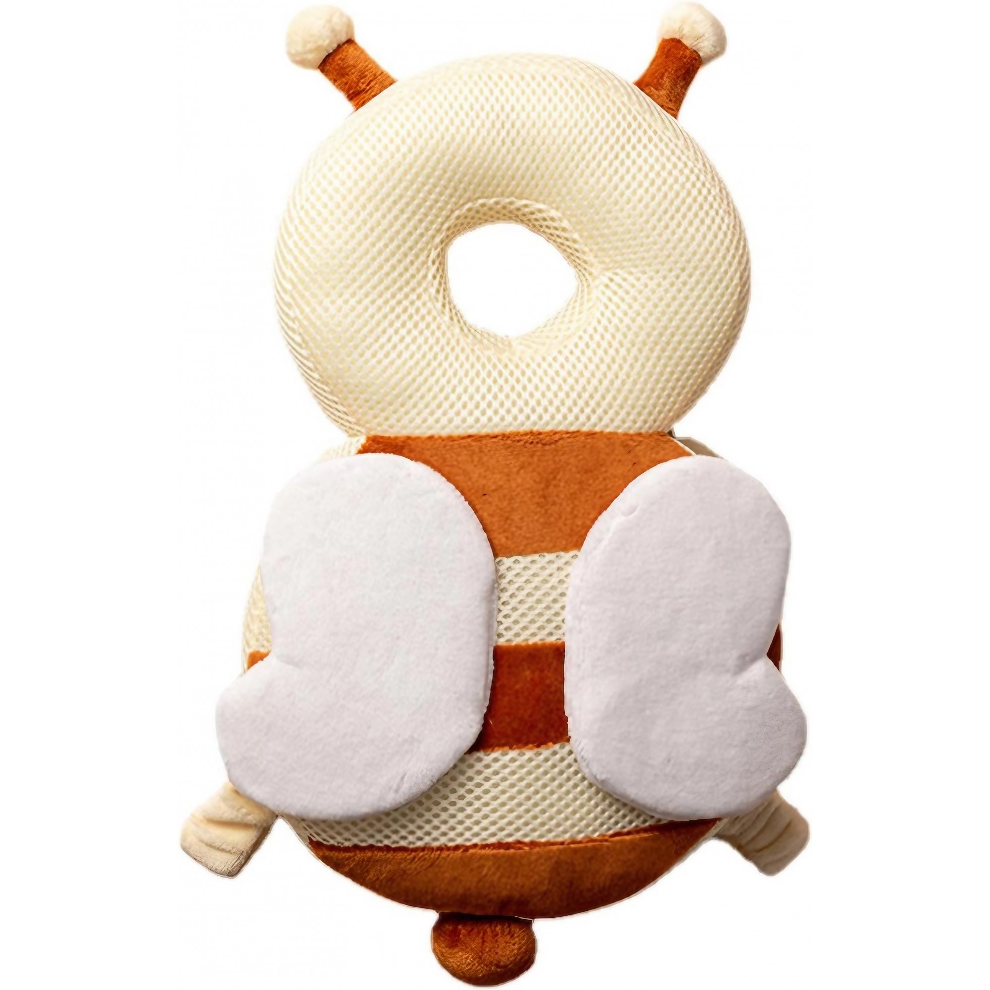 Perna tip Rucsac pentru Protectia Capului, Flippy, Tetiera tip Albina, pentru Bebelusi, Design tip Plasa, 33x6x19 cm, 180 g, Maro/Bej