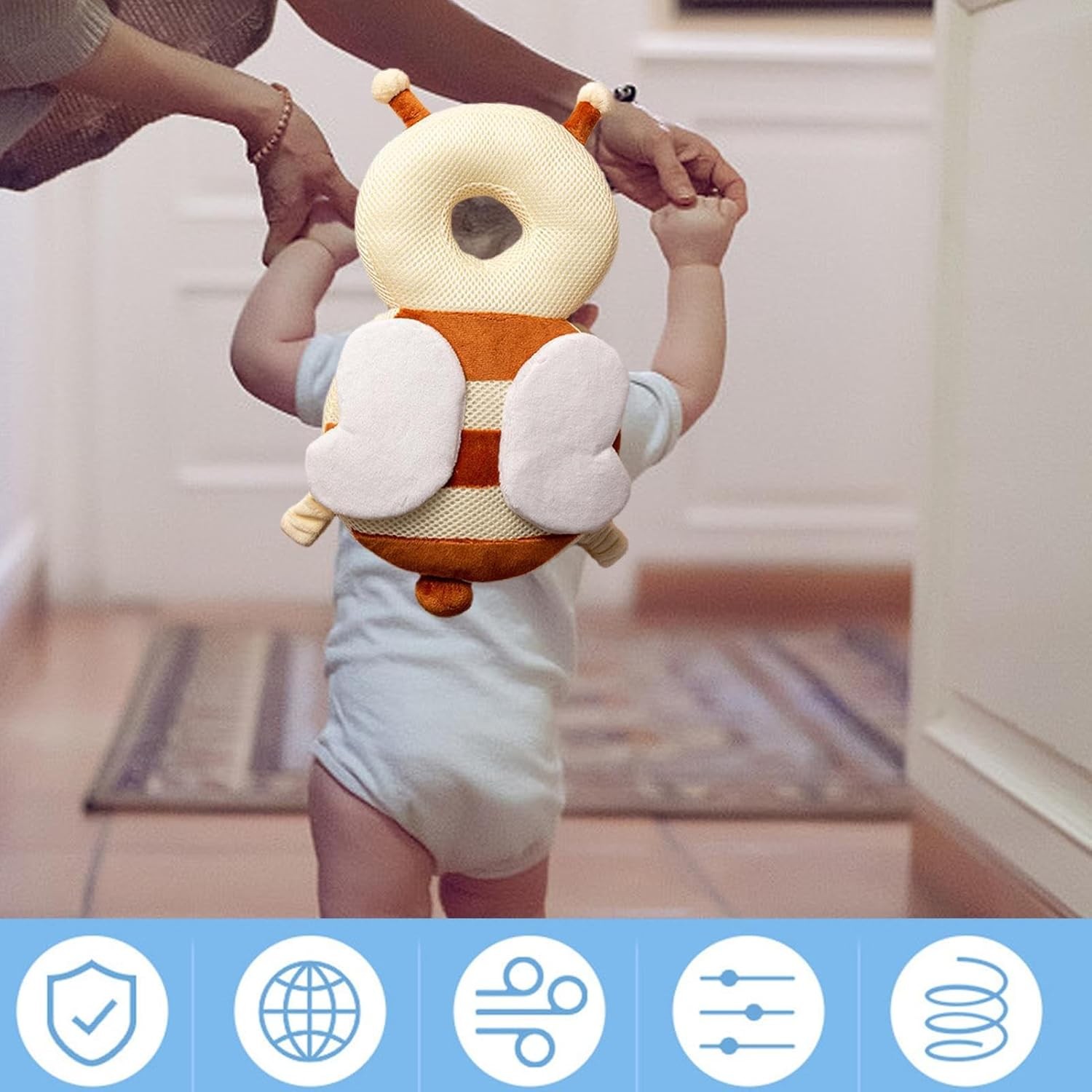 - Siguranță în mișcare: Oferă protecție capului bebelușului în timpul căzăturilor accidentale.