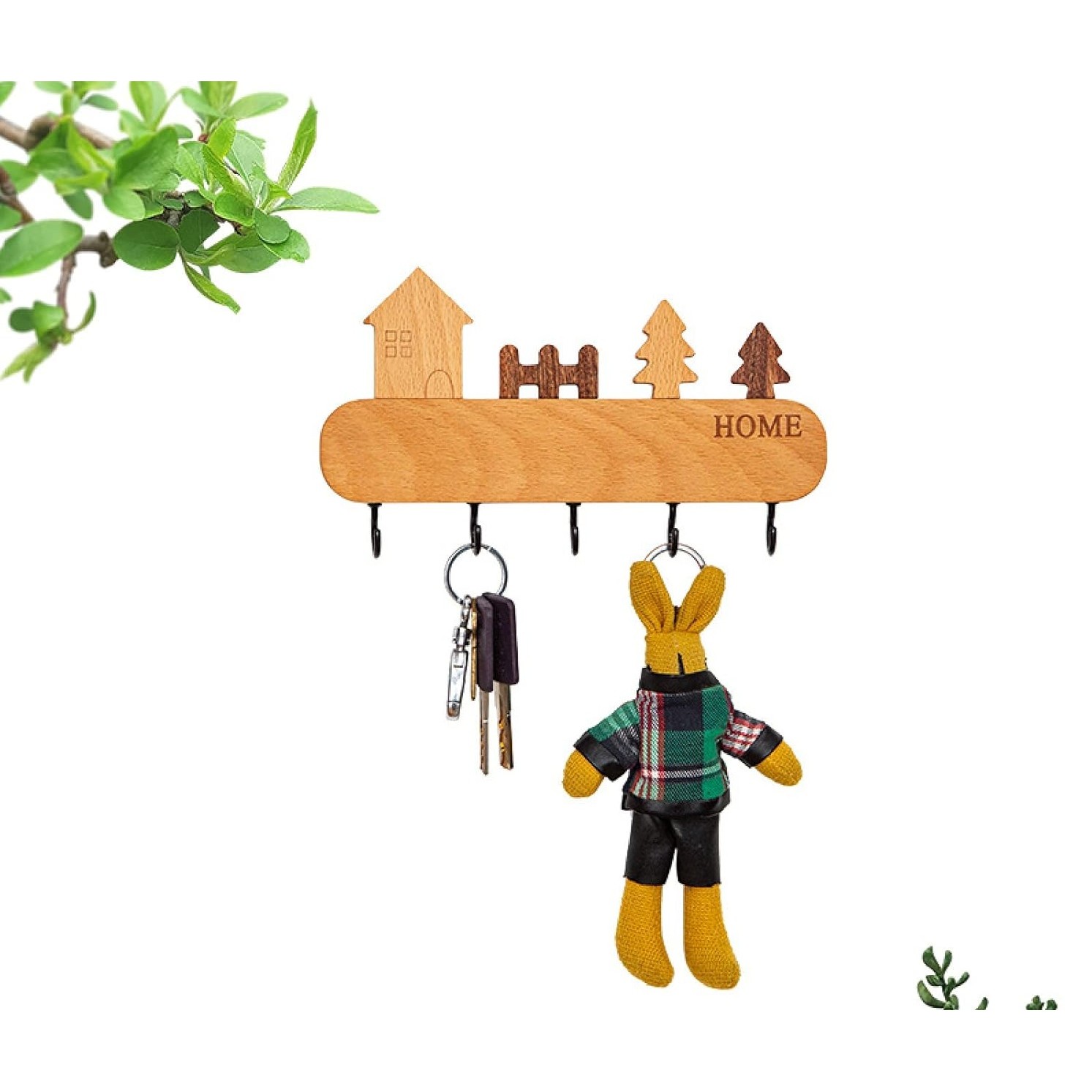Adaugă un element practic și estetic locuinței tale cu suportul pentru chei Flippy. Fabricat din lemn natural, acest cuier compact oferă 5 cârlige robuste și o instalare ușoară, fără a necesita perforarea pereților.