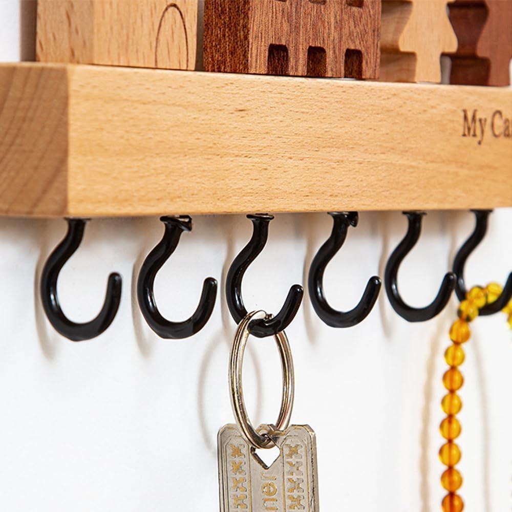 Adaugă un element practic și estetic locuinței tale cu suportul pentru chei Flippy. Fabricat din lemn natural, acest cuier compact oferă 6 cârlige robuste și o instalare ușoară, fără a necesita perforarea pereților.