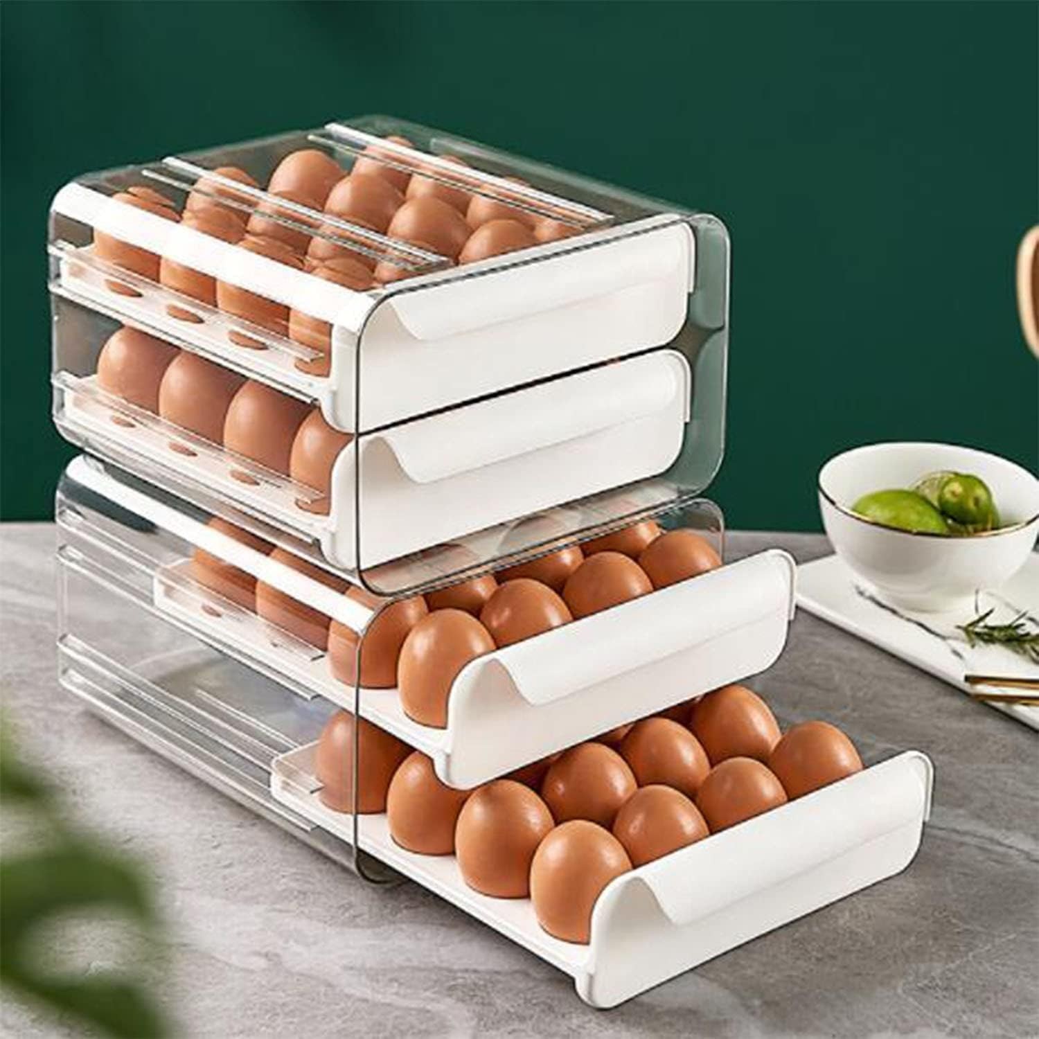 • Economisire de Spațiu: Ideal pentru frigidere aglomerate, acest suport stivuibil maximizează organizarea și păstrează ouăle în poziție pentru a evita rostogolirea și spargerea.