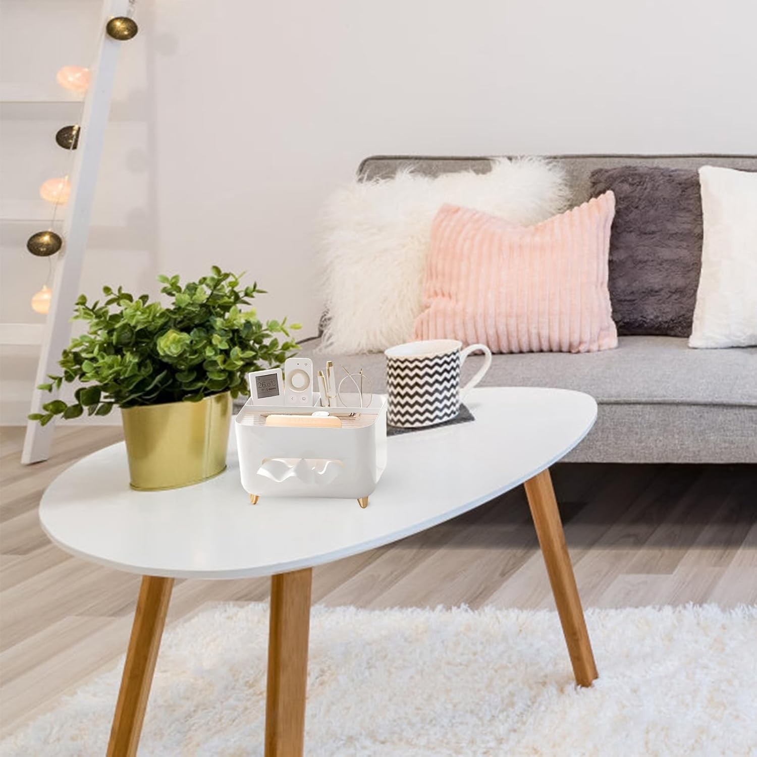 Design Minimalist: Forma simplă, curată și modernă a suportului îi permite să se integreze perfect în orice decor, fie că este vorba de o masă de dining, un birou sau o zonă de relaxare. Culorile neutre completează estetica sofisticată, făcându-l un accesoriu versatil.