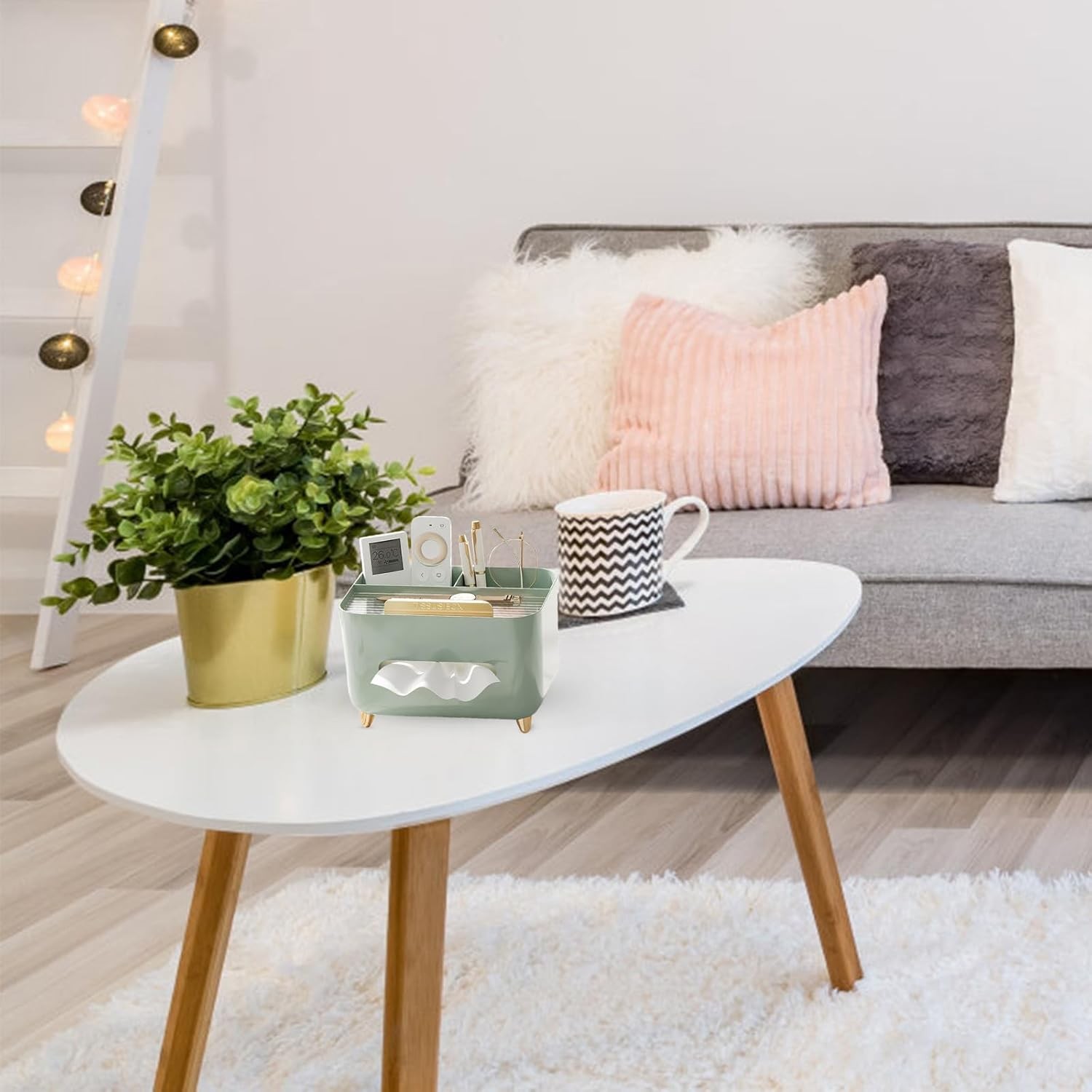 Design Minimalist: Forma simplă, curată și modernă a suportului îi permite să se integreze perfect în orice decor, fie că este vorba de o masă de dining, un birou sau o zonă de relaxare. Culorile neutre completează estetica sofisticată, făcându-l un accesoriu versatil.
