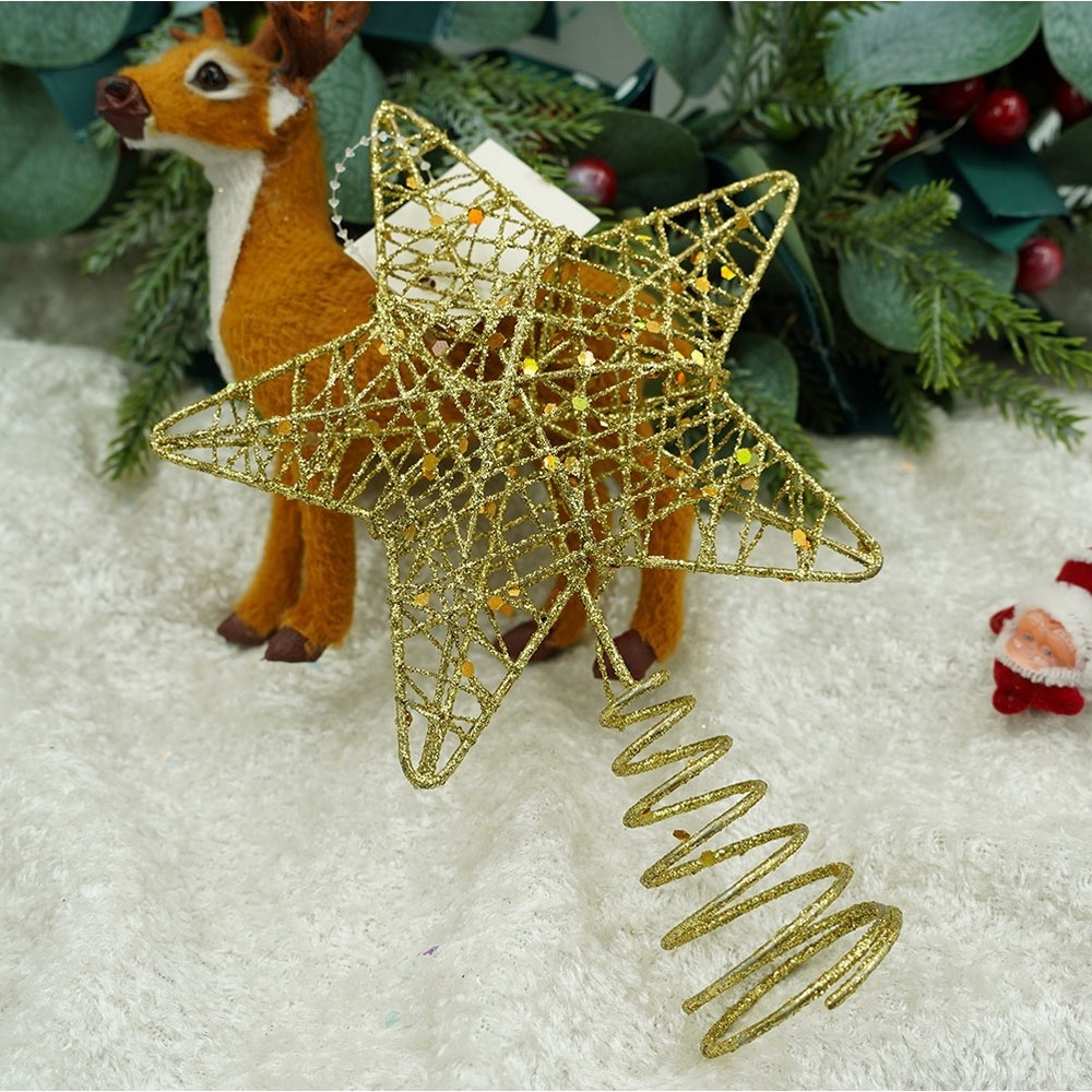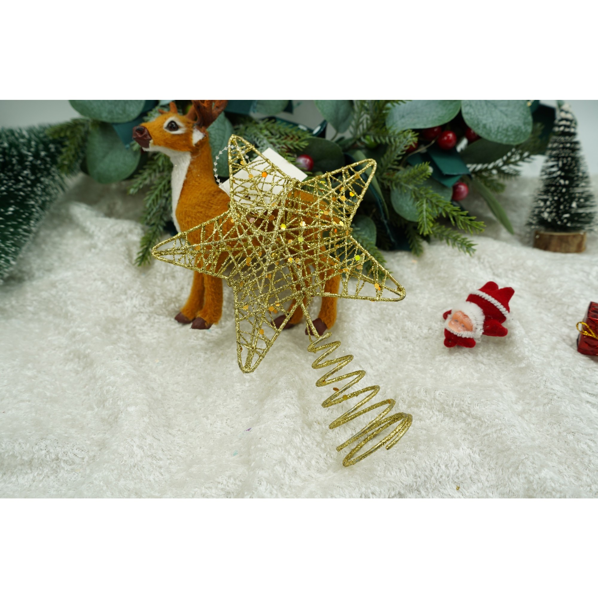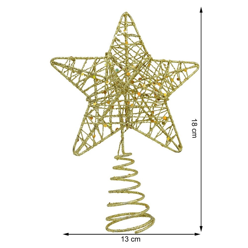 Varf decorativ de brad, Auriu, in forma de Stea, design cu paiete, din Plastic/Metal, 13 cm x 18 cm, diametru 4 cm, Interior/Exterior, Flippy