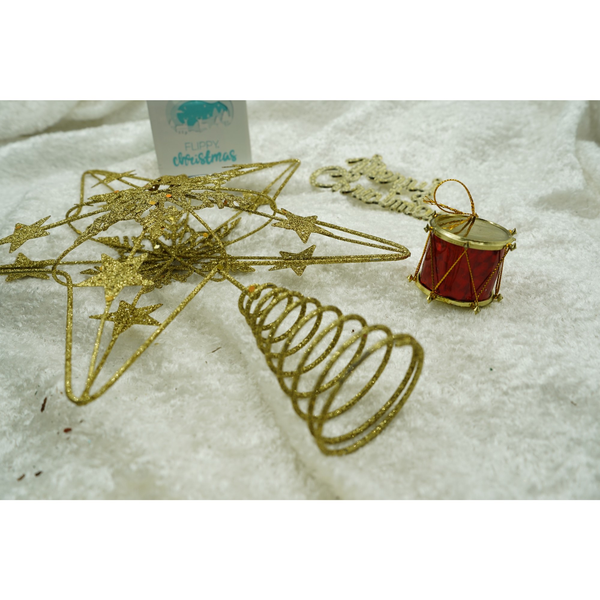 Varf decorativ de brad, Auriu, in forma de Stea, design de braduti, din Plastic/Metal, 24 cm x 27 cm, Interior/Exterior, Flippy