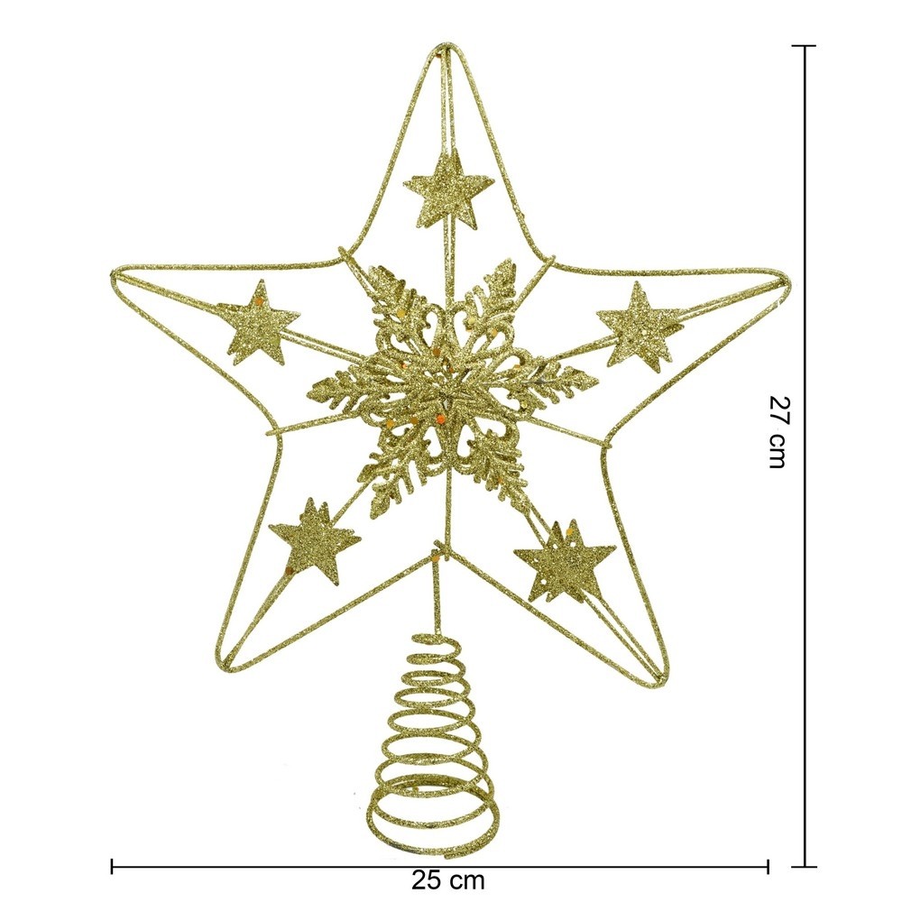 Varf decorativ de brad, Auriu, in forma de Stea, design de stele, din Plastic/Metal, 25 cm x 27 cm, Interior/Exterior, Flippy