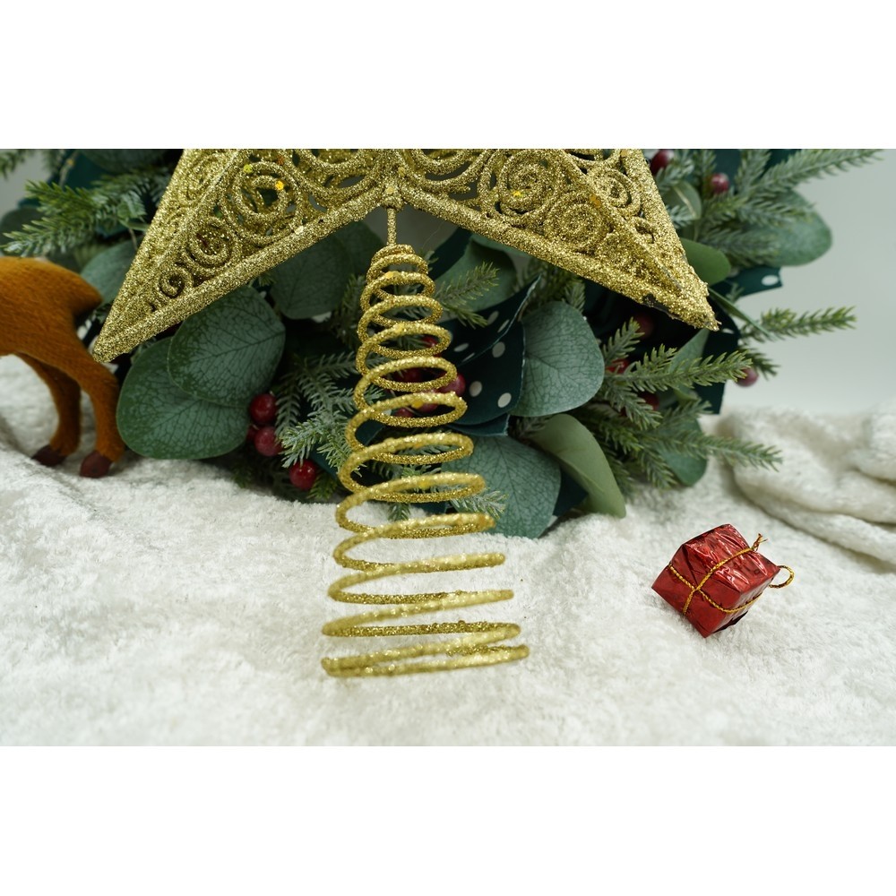 Varf decorativ de brad, Auriu, in forma de Stea, design spiralat, din Plastic/Metal, 29 cm x 38 cm, Interior/Exterior, Flippy