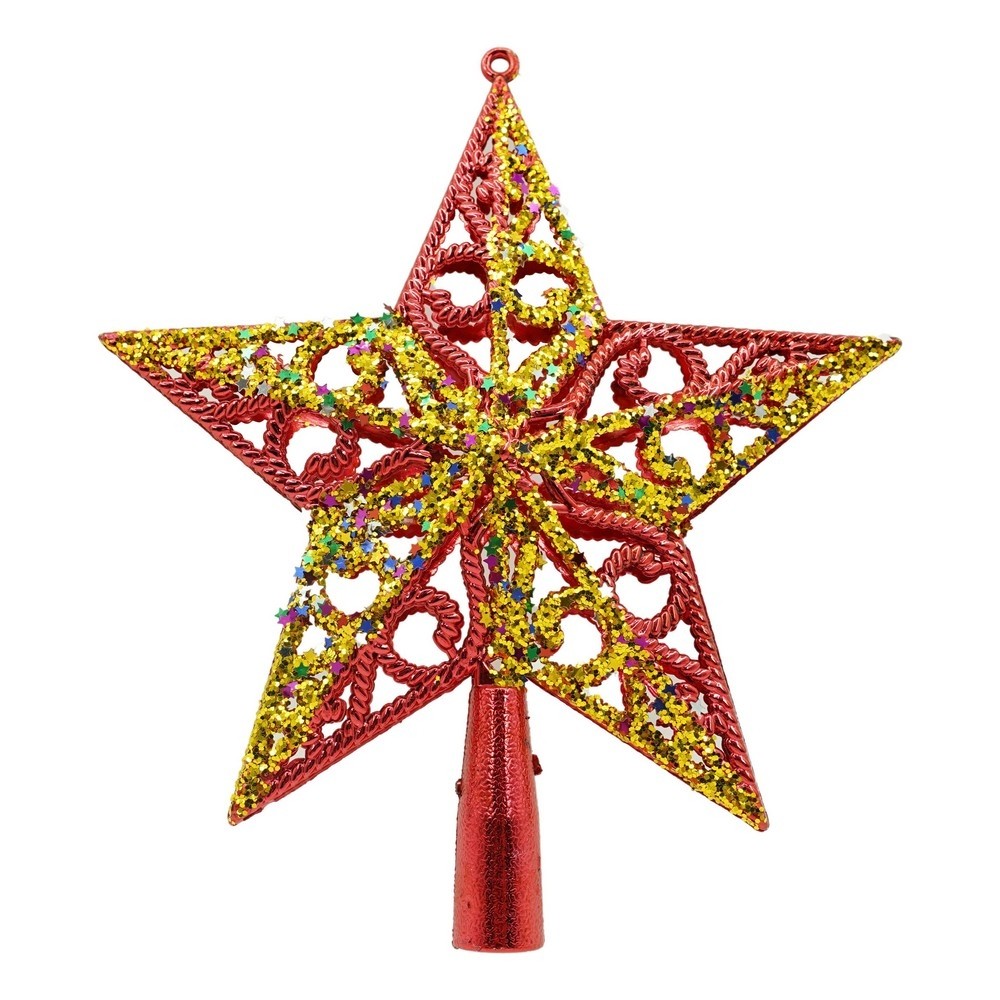 Cantitate Varf decorativ de brad, Rosu/ Auriu, in forma de Stea, design spiralat, din Plastic, 19 cm x 21 cm, Interior/Exterior, Flippy